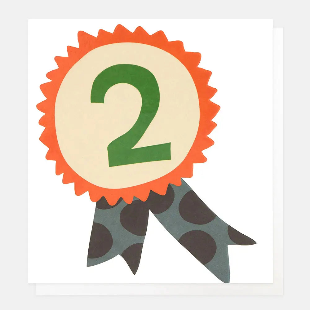 Part of their new Mini Milestones range, this second birthday card features a rosette with the number 2 in and spotty ribbons, and is finished with embossed detail for that special touch. Blank on the inside for you to add your own personal message.