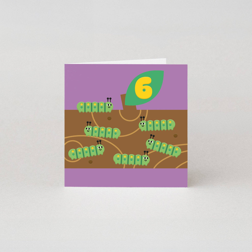6th Birthday Card - Caterpillar Children's Birthday Card-Studio Boketto