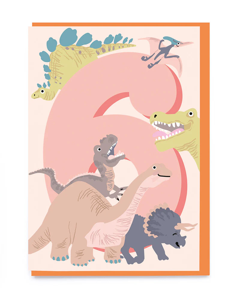 For the dino-lover turning six, this card roars with excitement! With a variety of dinosaurs surrounding a big 6, it’s the perfect way to celebrate a wild birthday.
