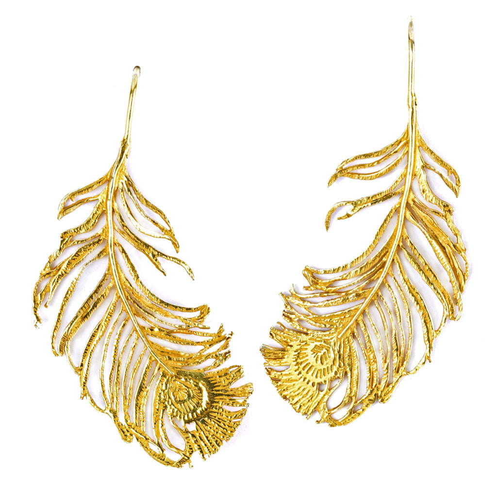 Peacock Feather Hook Earrings - Gold, By Alex Monroe