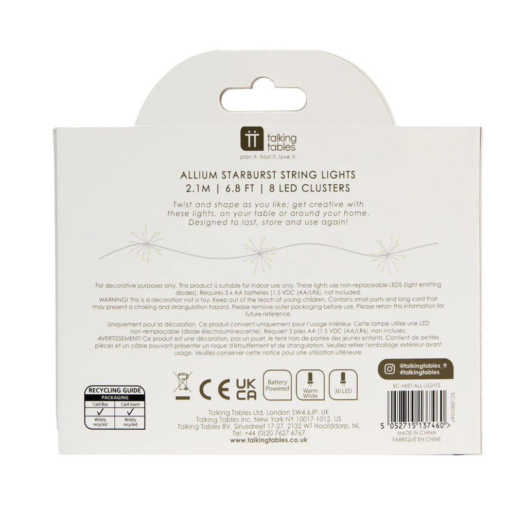 Turn any part of your home into a cosy winter wonderland with these starburst shaped LED lights. Inspired by the charming shape of the allium flower, unwrap these LED lights and arrange them as you like around a banister, bookshelf or mantlepiece. With a warm twinkling glow, these lights will add a sparkle to any part of your home this Christmas season.