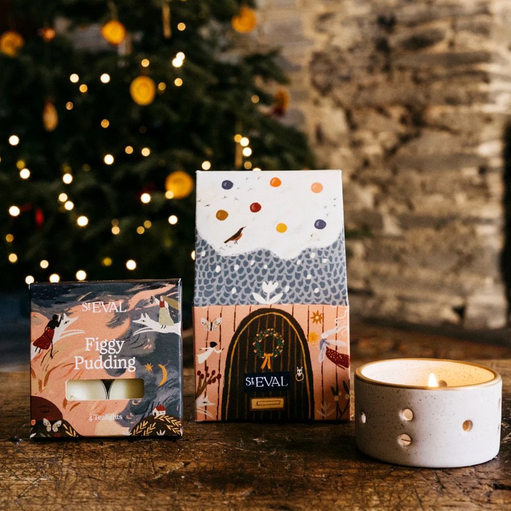 Christmas Cottage Figgy Pudding Tealight's And Holder By St Eval