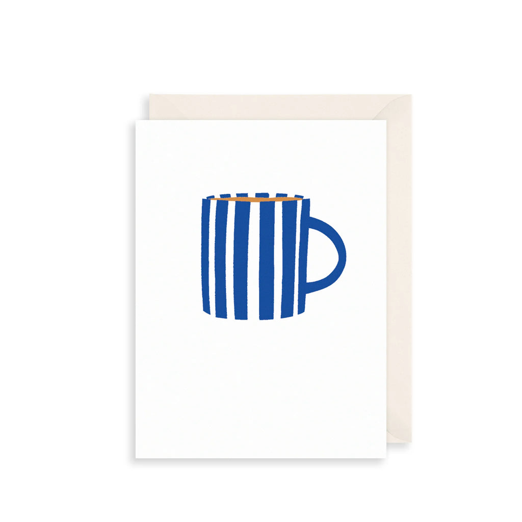 Put a smile on someone's face with this thoughtful card. This card features a blue and white striped mug, paired with a white background.