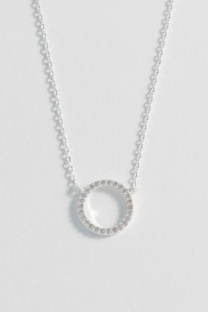A minimalist piece with added sparkle, this silver plated circle necklace is the epitome of simplicity and timeless addition to your jewellery collection. Featuring pave set cubic zirconia.
