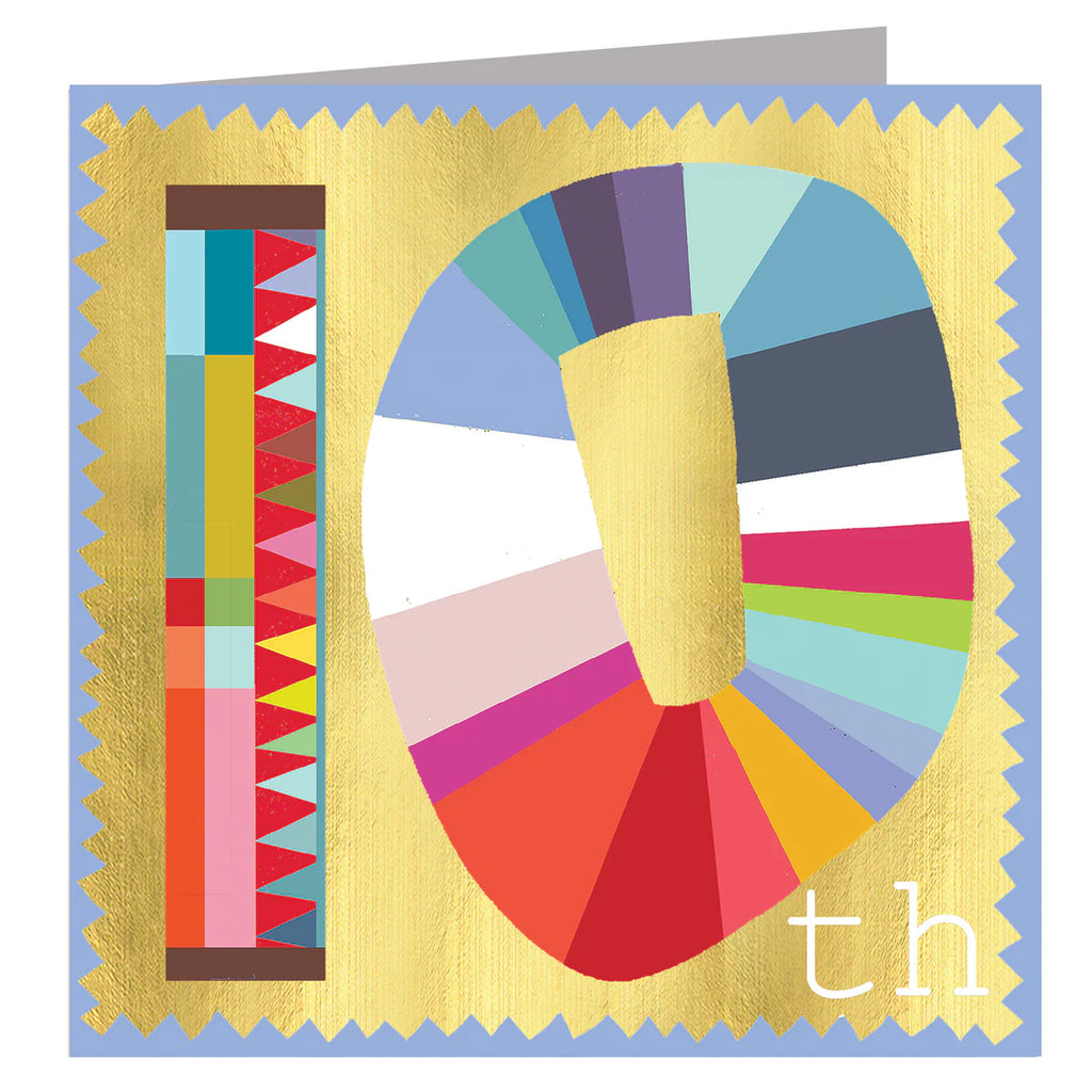 A gloriously golden number card featuring a big, bold and beautiful number ten. Perfect whatever the gender of the recipient and made extra special with the gorgeous gold foiling. This card works well for birthdays and anniversaries alike.