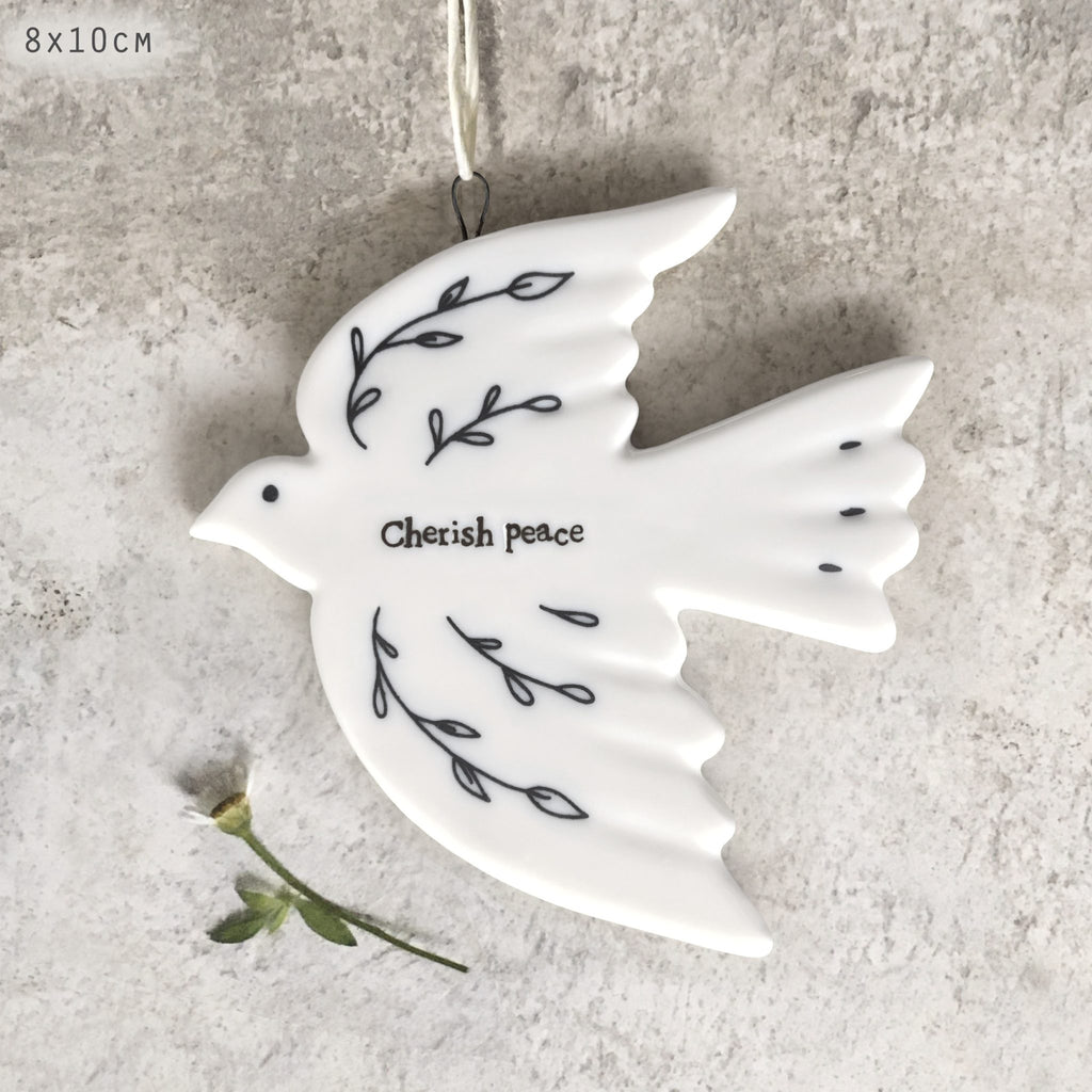 Hanging Porcelain Dove "Cherish Peace" By East Of India