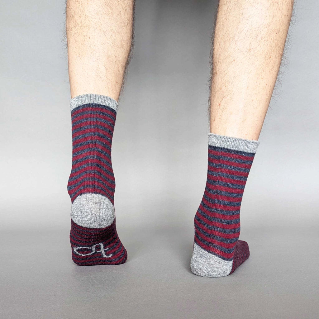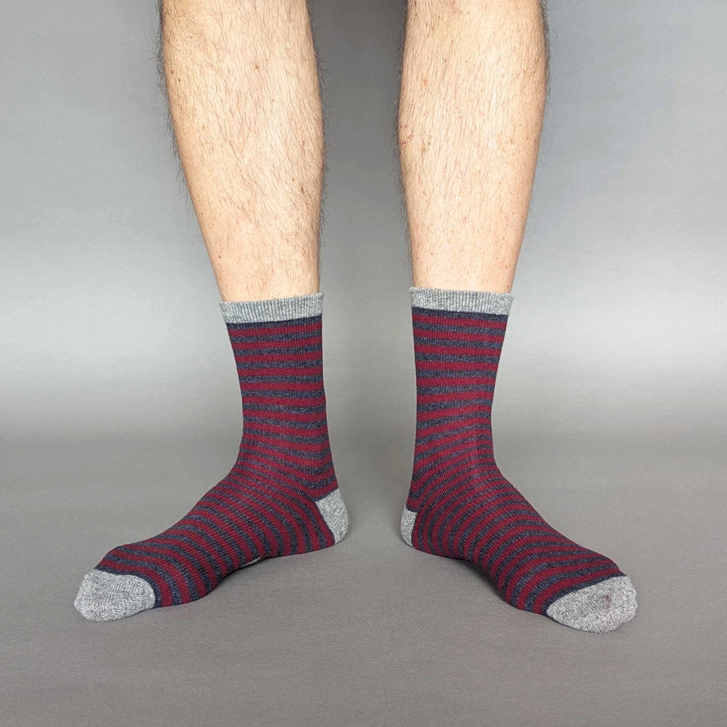 Men's Lambswool Striped Ankle Socks - Plum By Catherine Tough (Size 8-11)