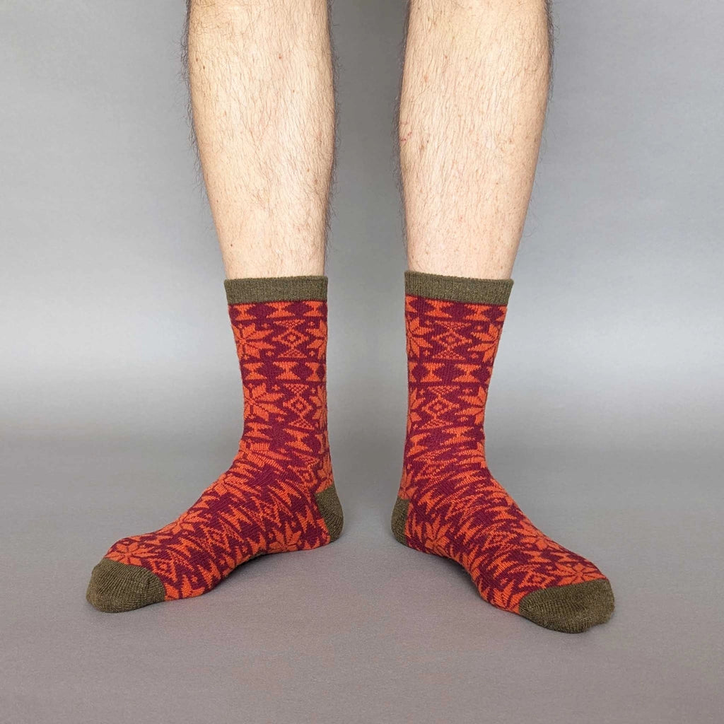 Men's Lambswool Ankle Socks Fair Isle - Plum By Catherine Tough (Size 8-11)