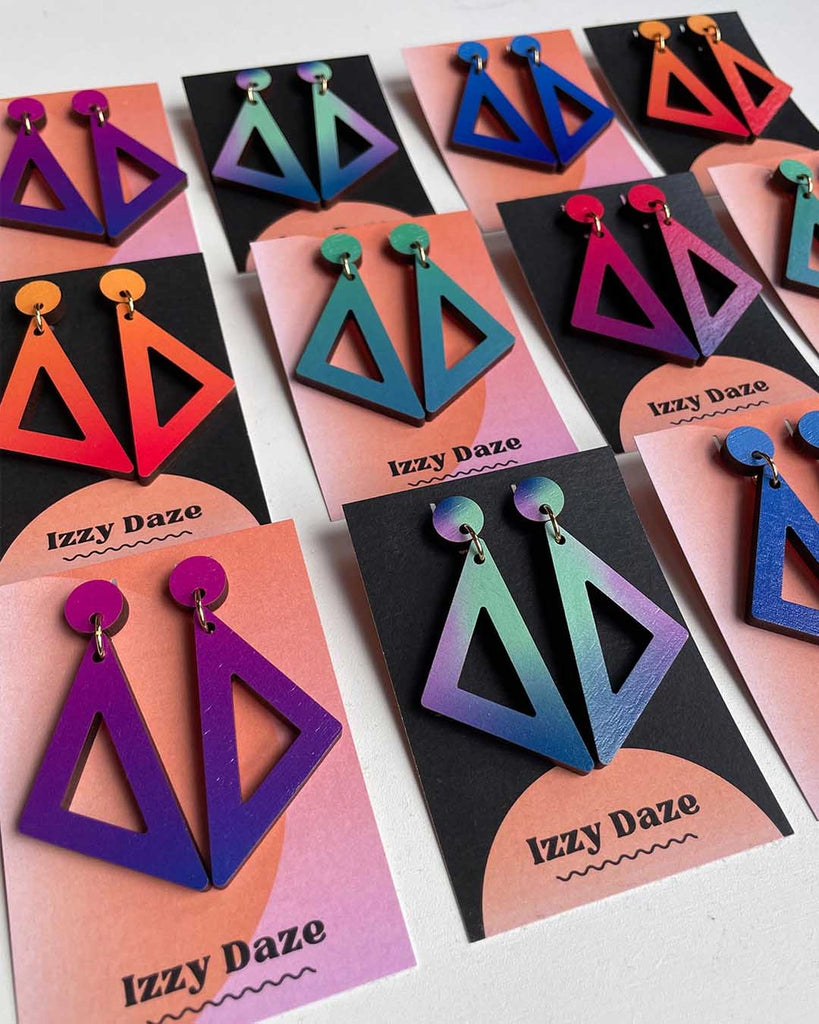 Triangle Drop Earrings Ruby Sunrise - Gradients By Izzy Daze