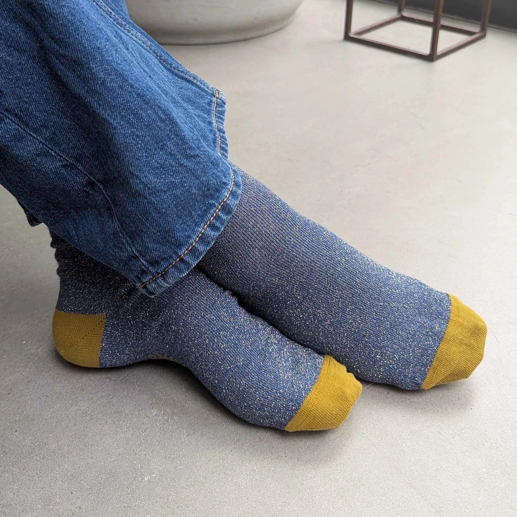 Subtly sparkly crew socks for women expertly knitted from the softest combed organic cotton and high-quality Lurex.