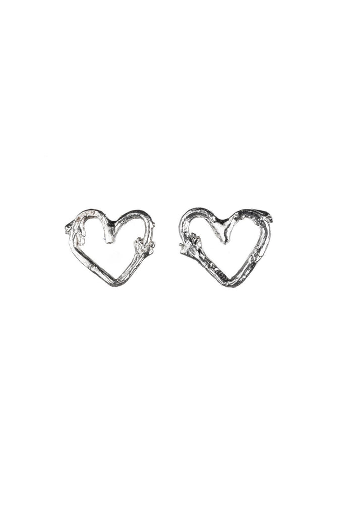 Amanda Coleman Mini Heart Twig Stud Earrings Silver