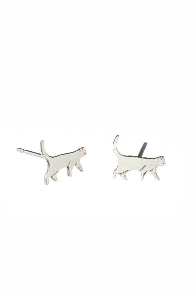 Tiny Walking Cat Stud Earrings In Silver By Amanda Coleman
