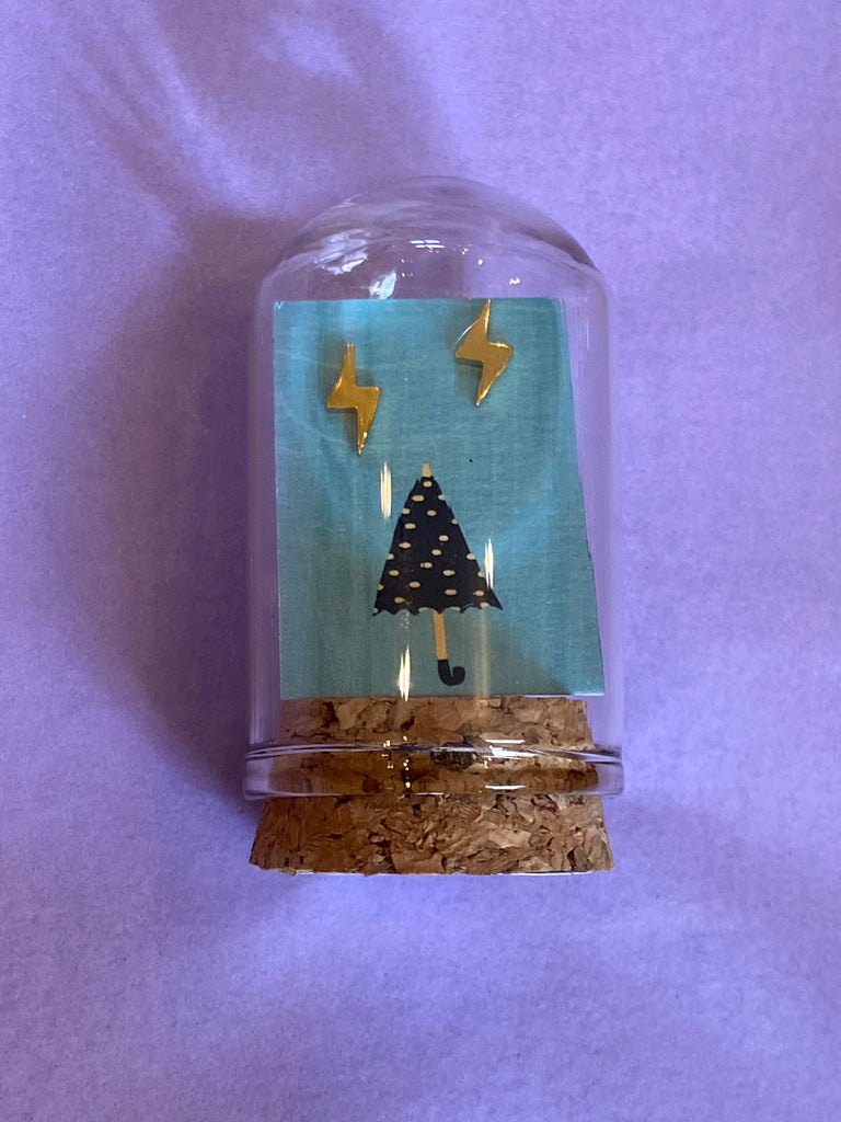 These stud earrings are packaged in a small glass jar with a cork stopper.