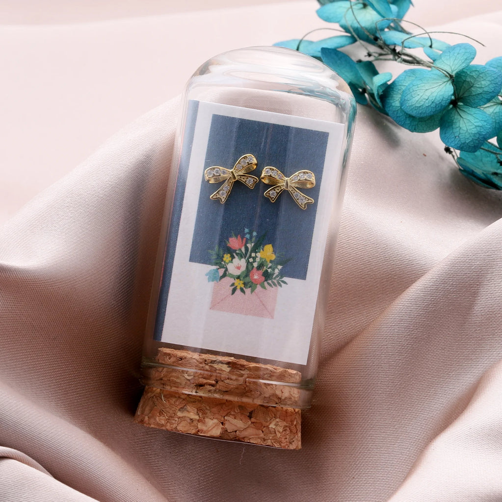 Sterling Silver Gold Plated Crystal Bow Earrings