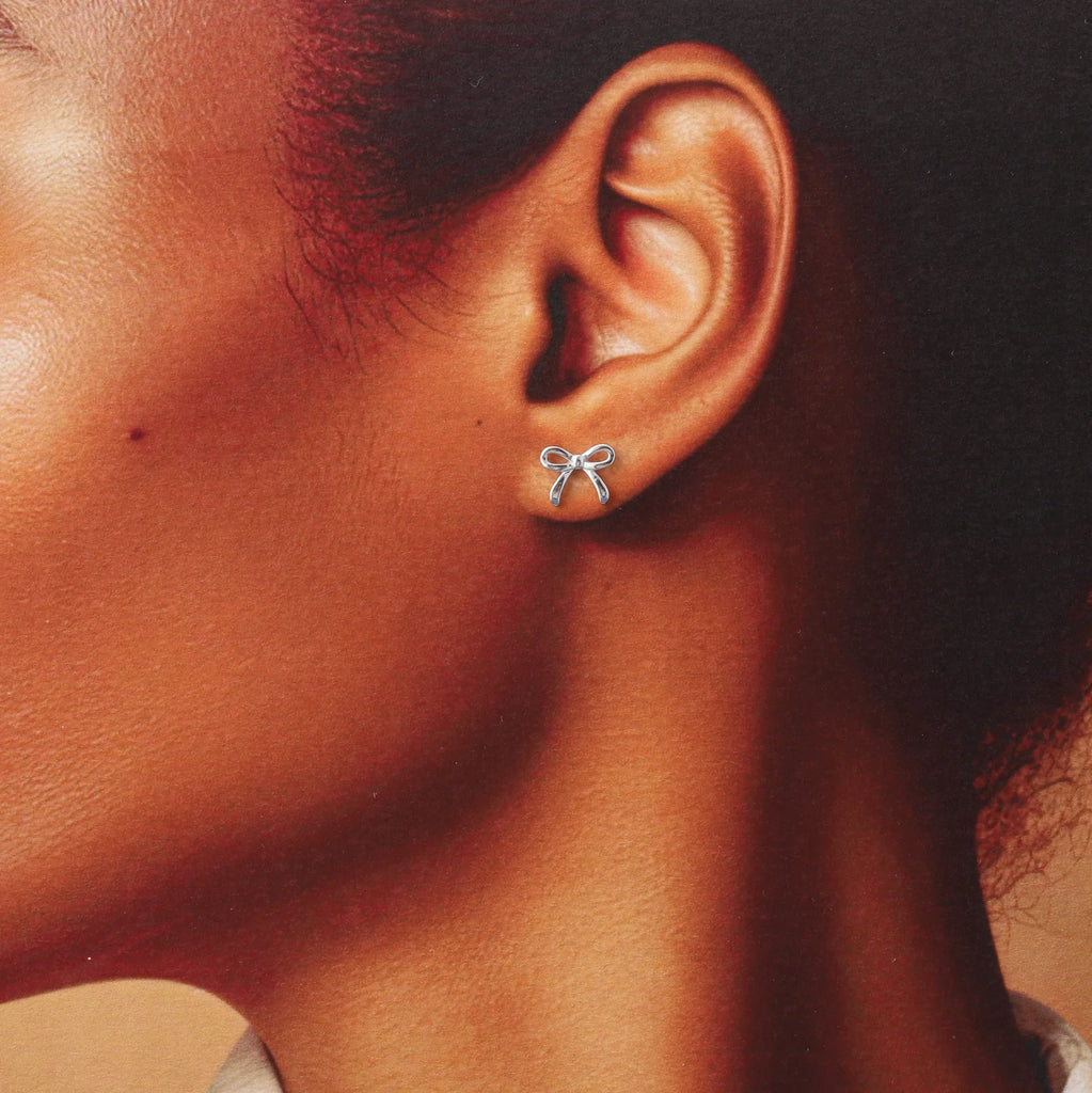 Little Note Little Bow Silver Earrings By Attic Creations