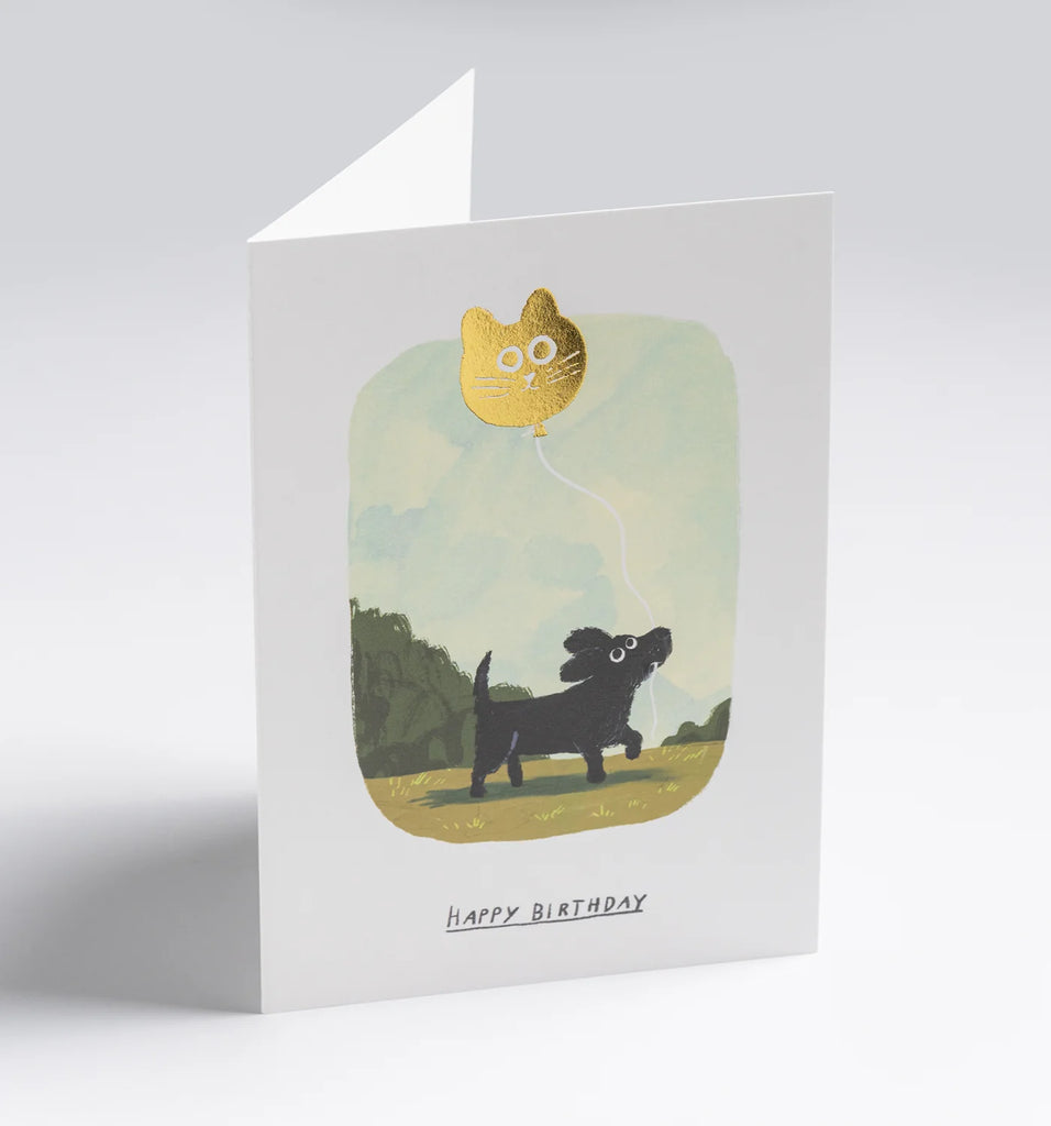 Dog with Cat Balloon Happy Birthday Card-Lagom Design