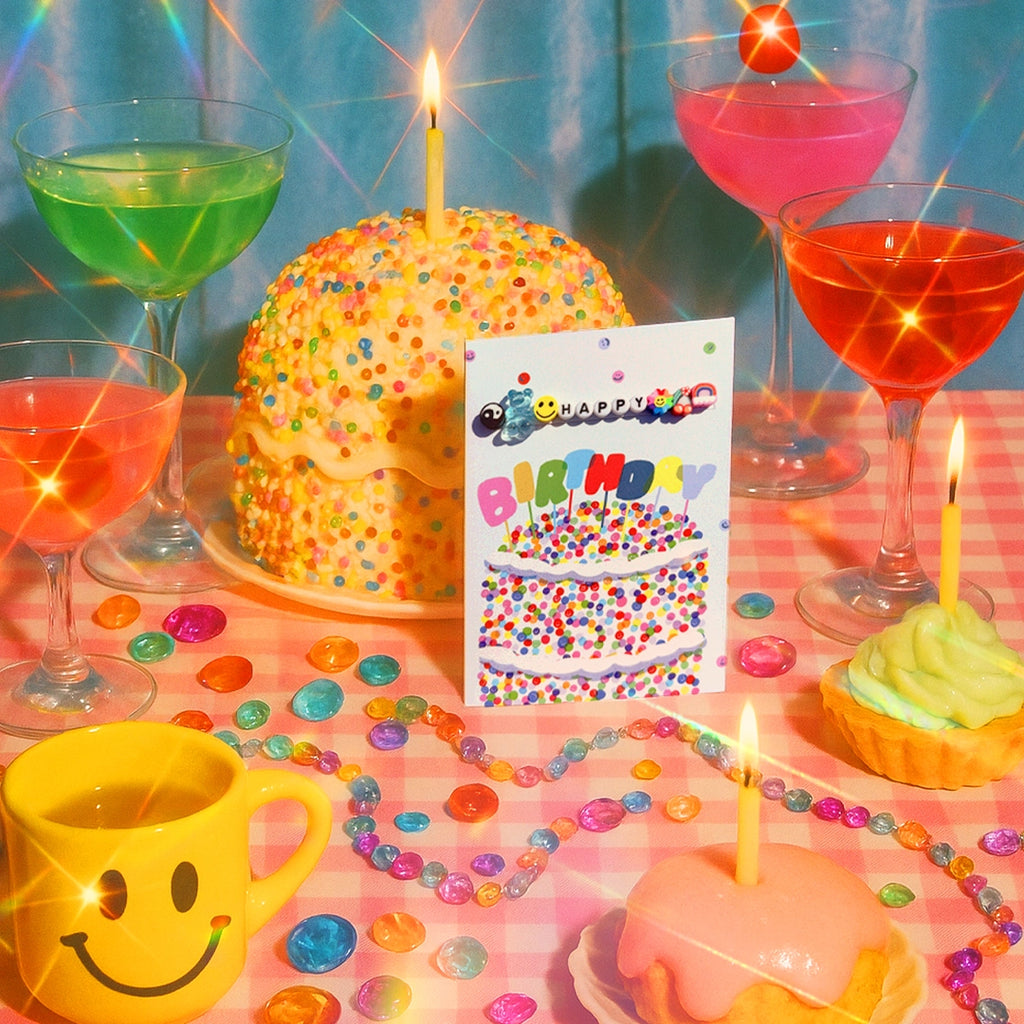 A world's first. Each card comes with a detachable, fully wearable keepsake friendship bracelet that forms part of the card design. The bracelets are elastic so fit a range of wrist sizes - from teens to adults. They feature premium resin and metal charms Printed on premium 350gsm card. Comes with a pale pink envelope. Blank Inside. Part of the Pick N Mix collection designed by Jolly Awesome founder Matt Nguyen.