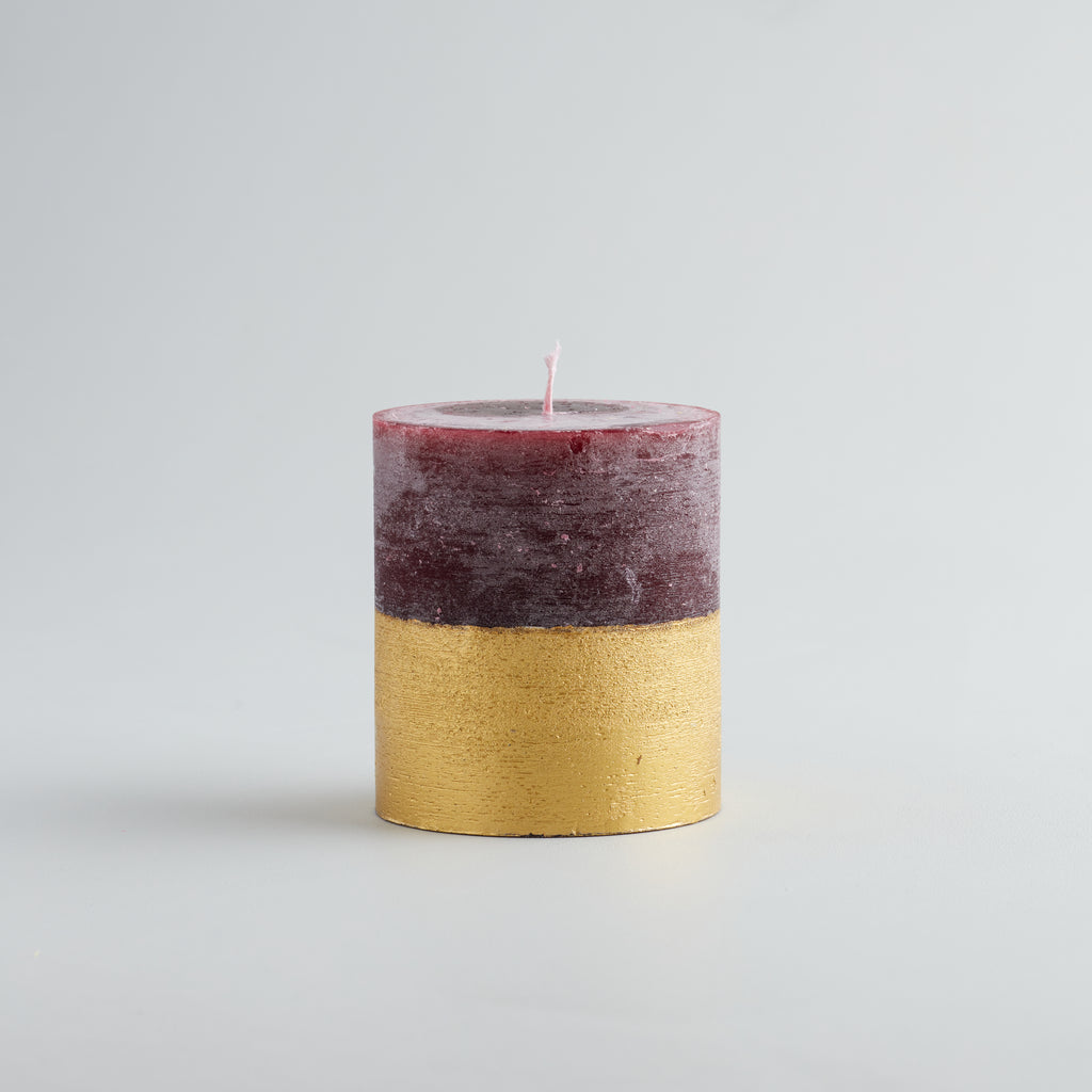 Gold Half Dipped Pillar Candle Figgy Pudding - St. Eval