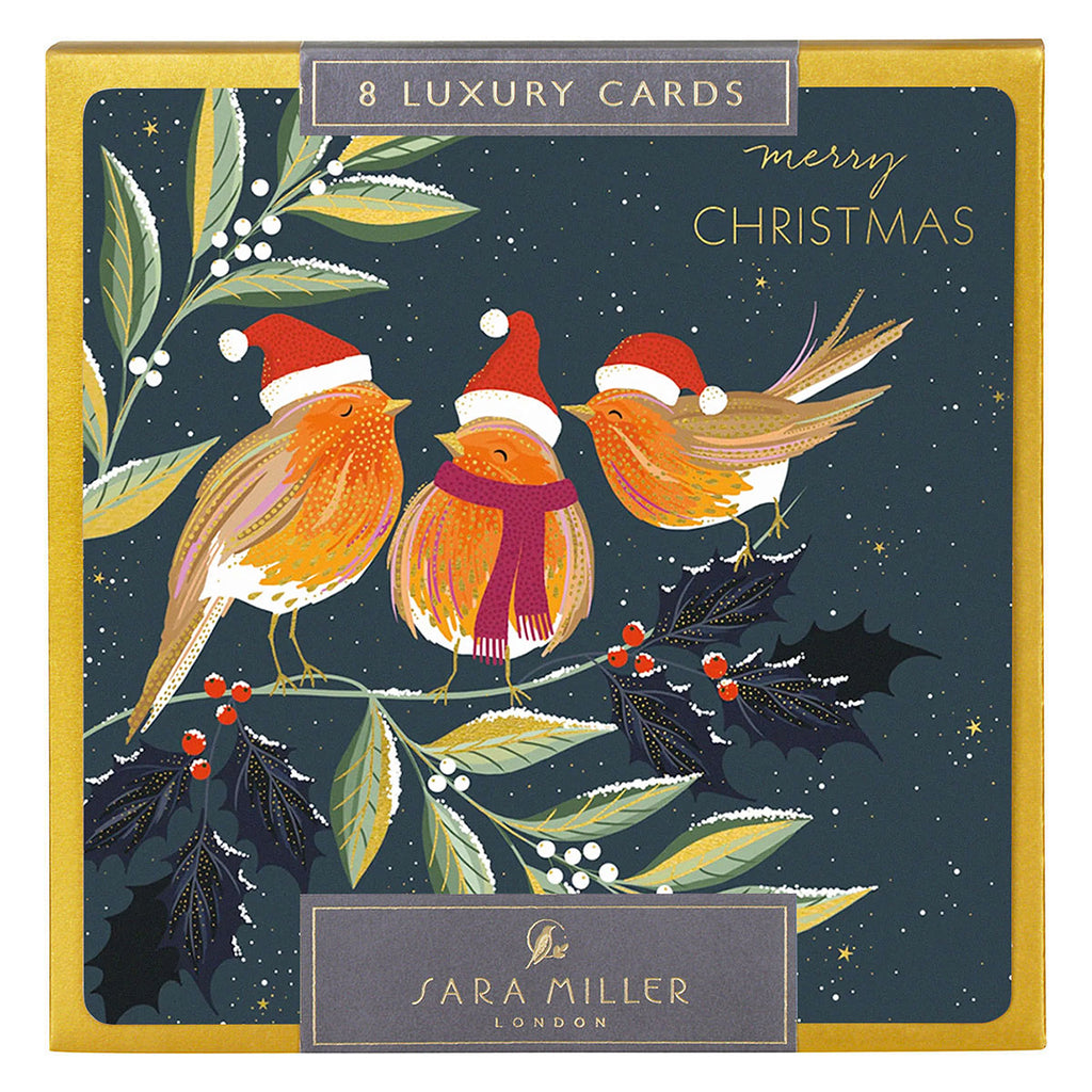 Sara Miller Three Robins Box of 8 Luxury Christmas Cards - The Art File