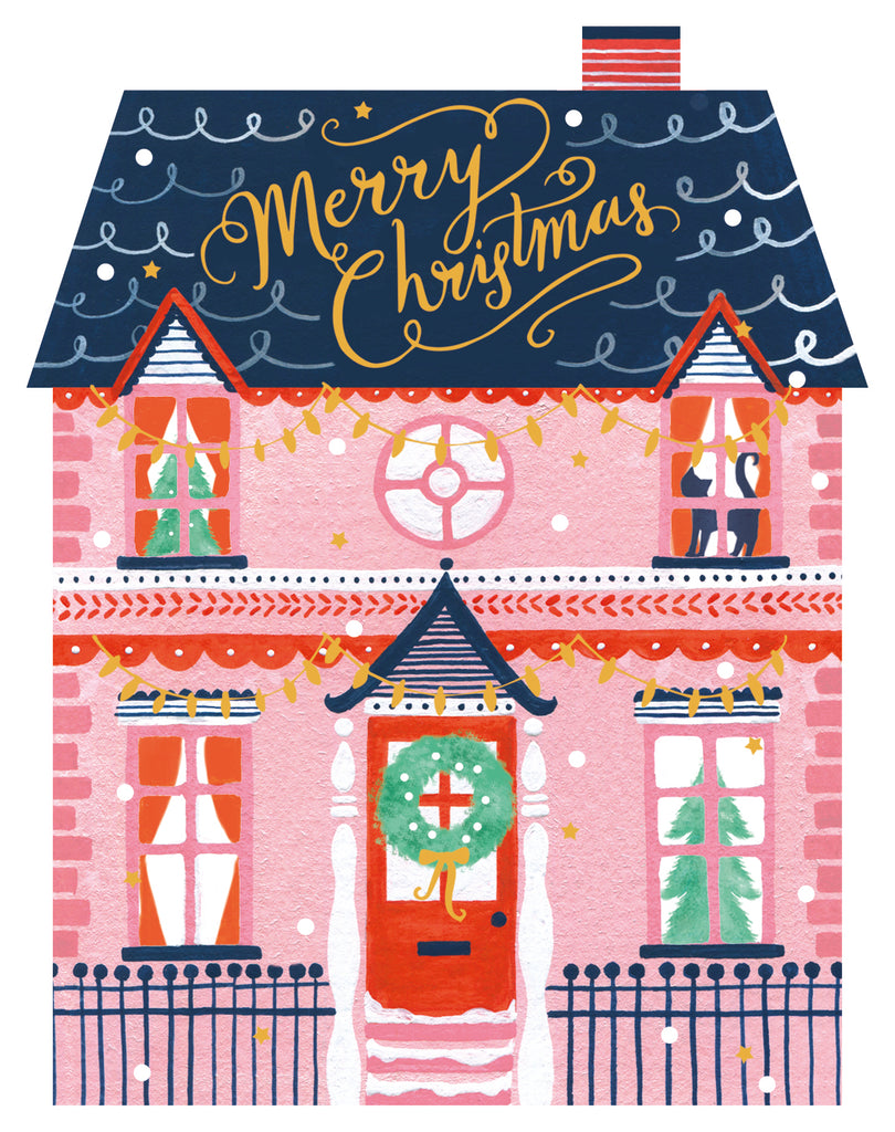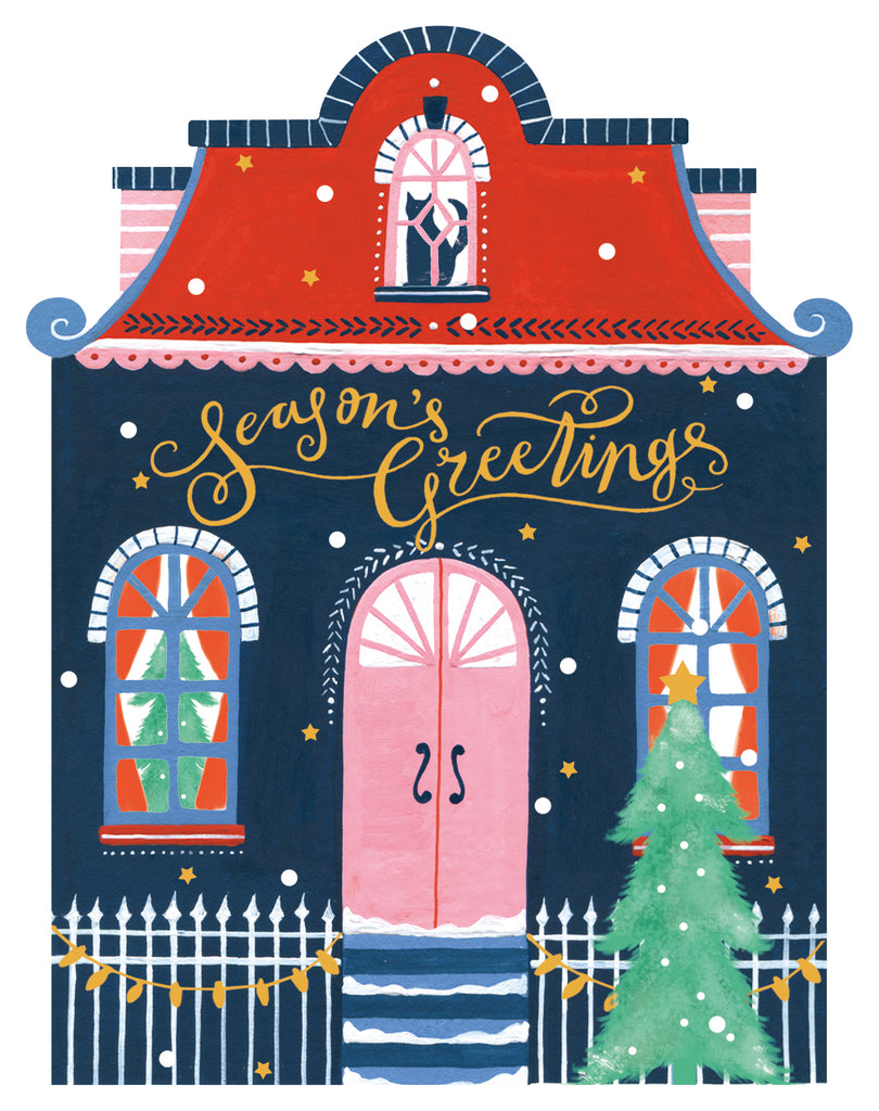 Tray of 12 Christmas Cards And Envelopes Festive Houses Trio By The Art File