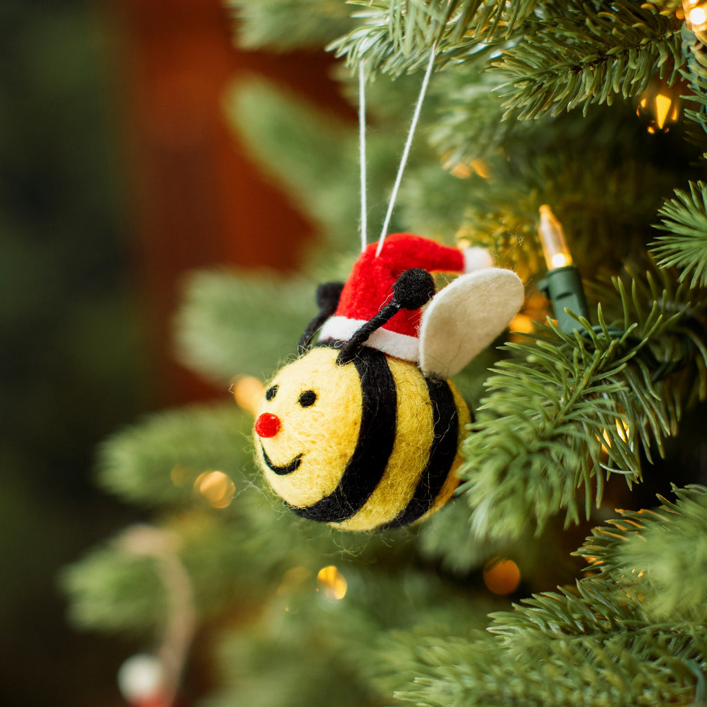 Focusing on the green at Christmas, this buzzing set of two decorations is a charming addition for those who cannot get enough of the outdoors! Fall in love with our felt honey bee, featuring a festive hat and smiley expression.