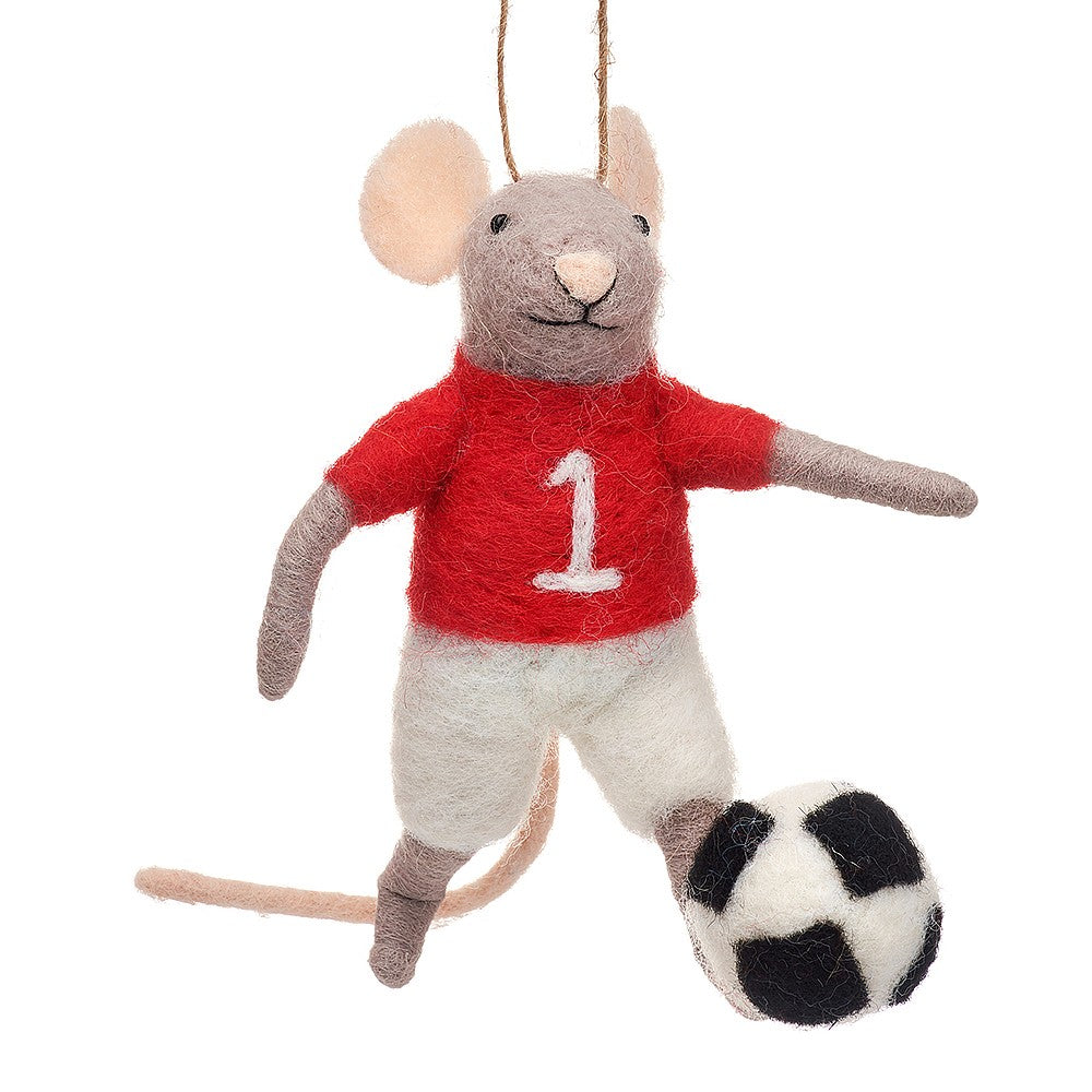 Bring a fun touch to your home this Christmas with our Football Mouse Hanging Decoration. Featuring a white and red colourway, this cute decoration is designed to be hung on the tree.
