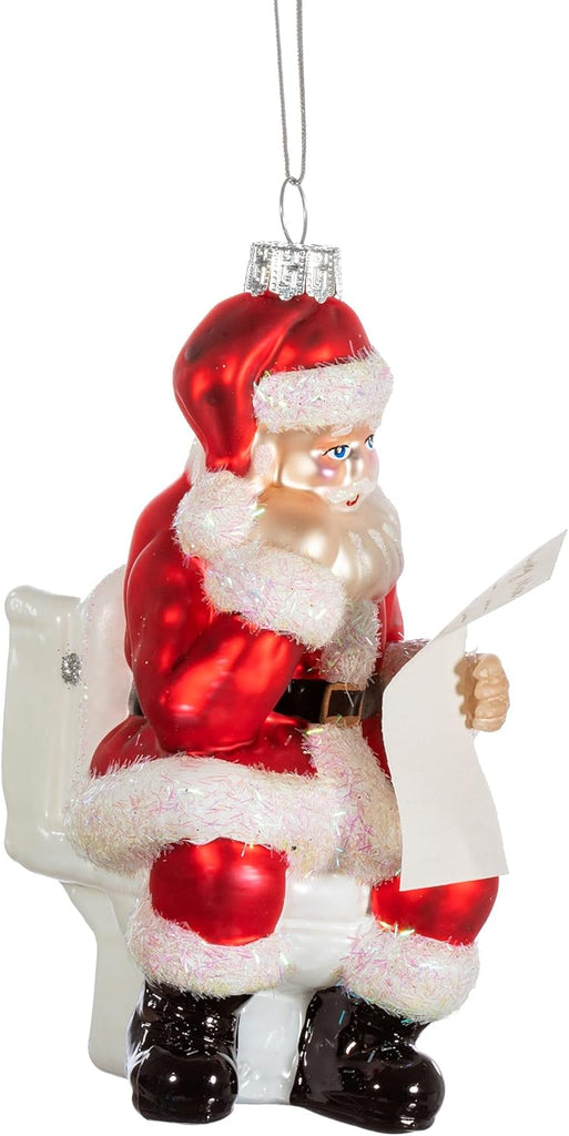 Capture the innocence and playfulness of the festive season with this Santa on the loo bauble. To add a bit of festive magic, the design has been finished with iridescent sparkles on all the important details.