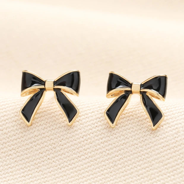 Black Enamel Bow Stud Earrings in Gold-Lisa Angel