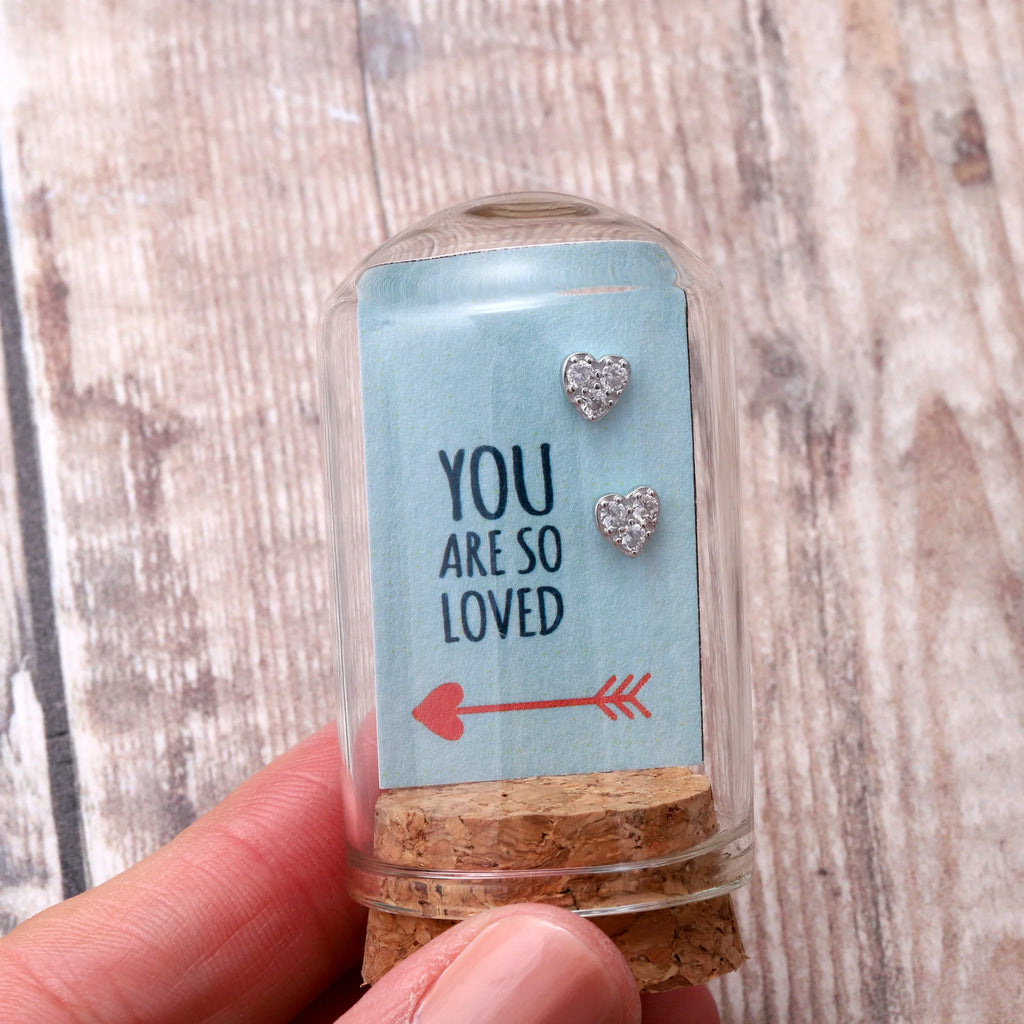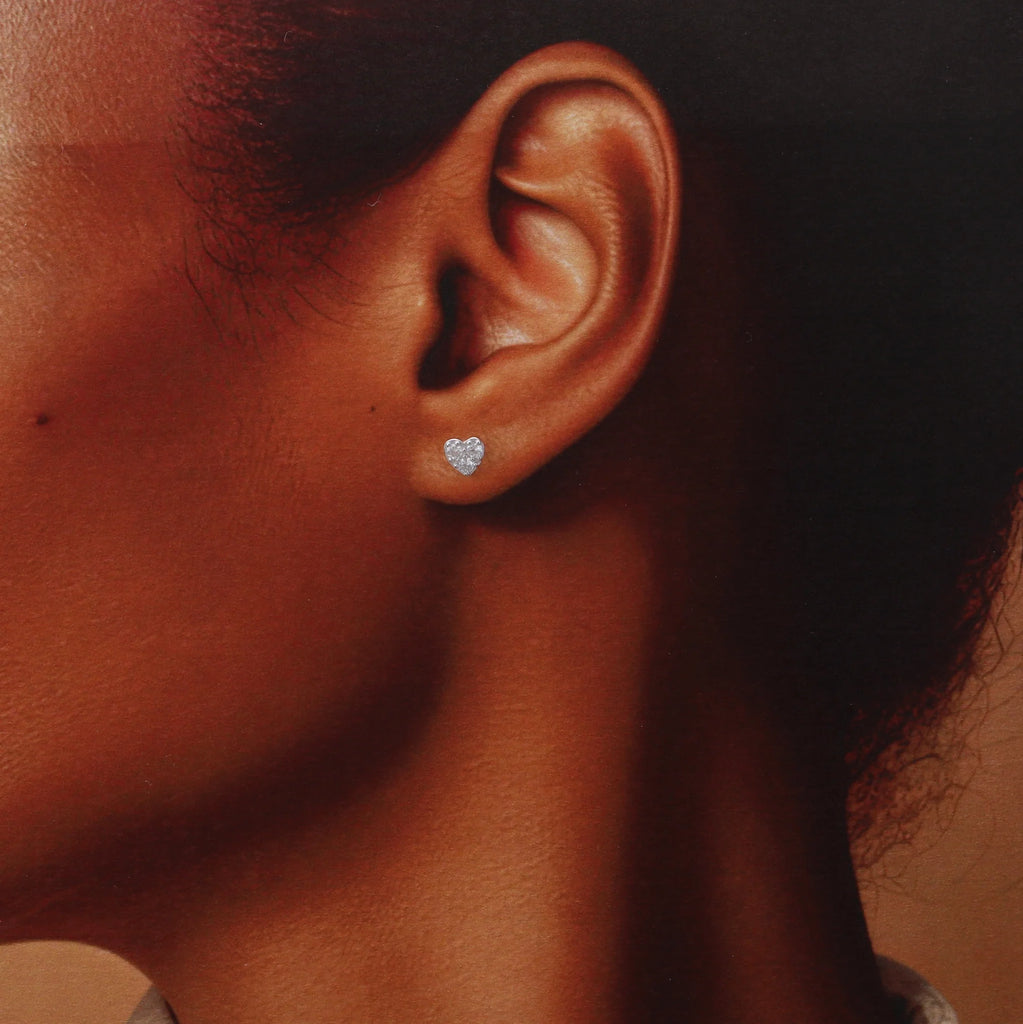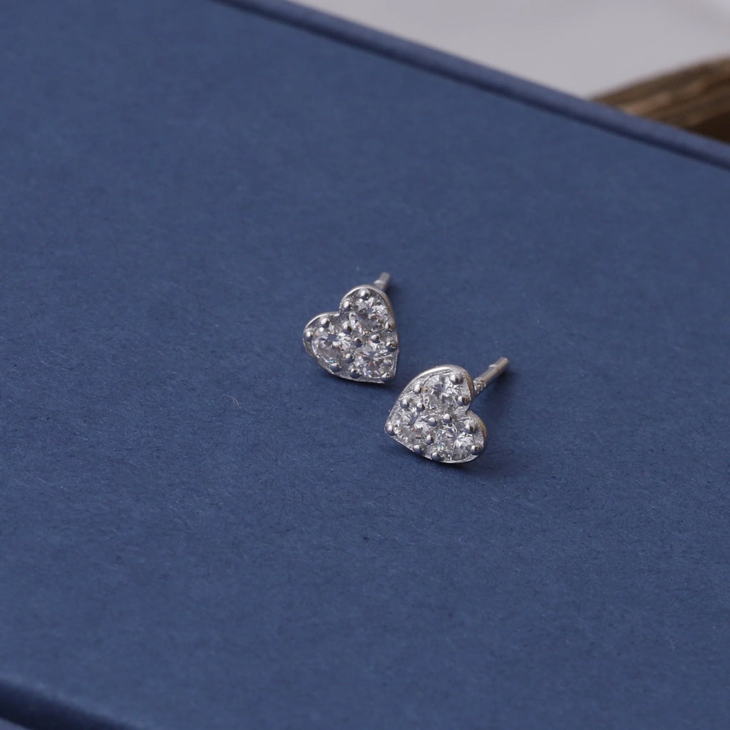 Little Note Crystal inlaid heart earrings Silver - Attic Creations