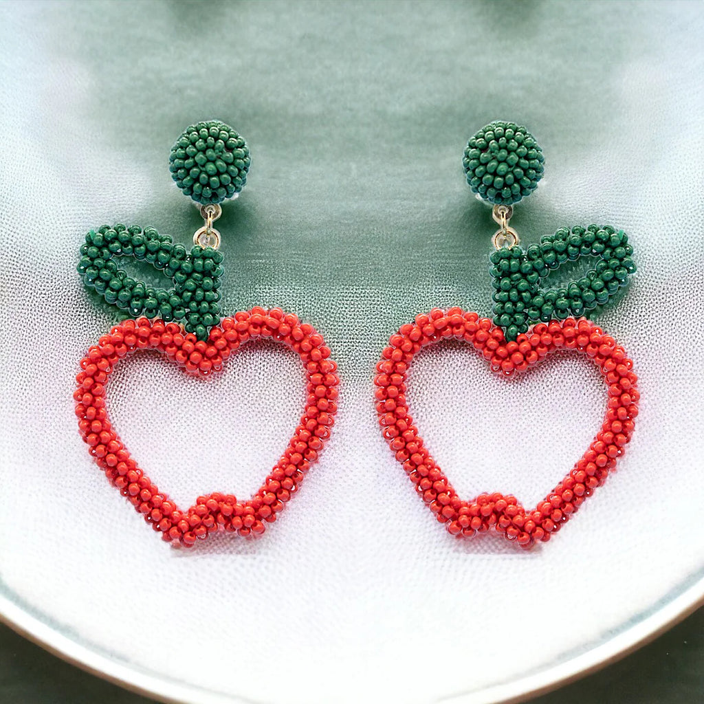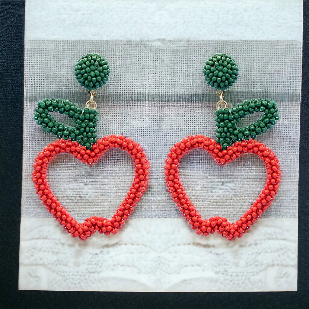 Crafted with fun beading and an apple shape, these drop earrings make a bold statement. With a unique blend of fashion and fun, they're the perfect accessory for any outfit.