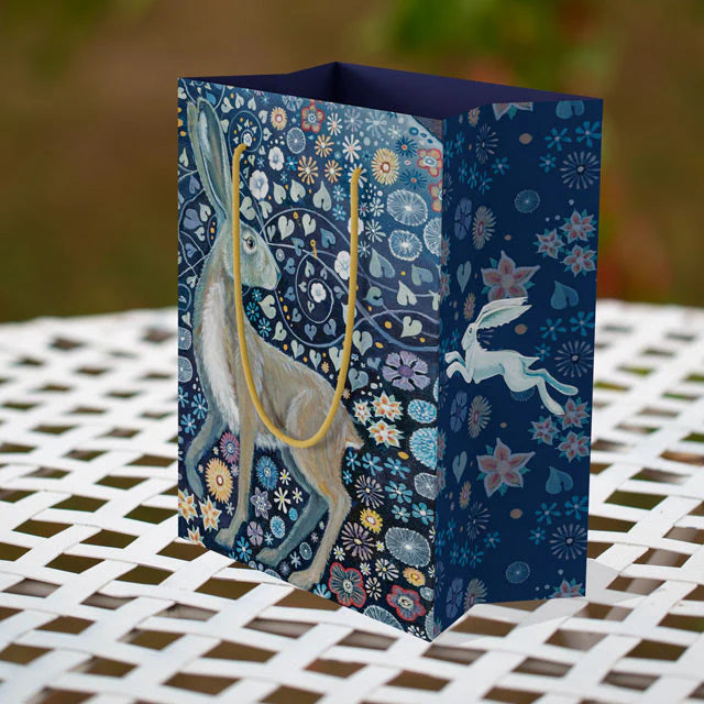 Hare Watching Medium Sized Gift Bag-Green Pebble