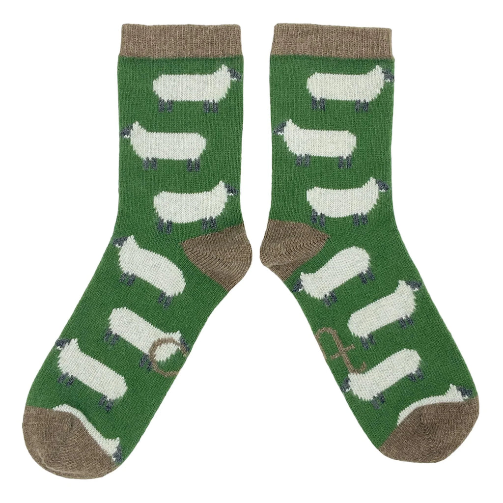 Catherine Tough Lambswool Green Sheep Socks UK 4-7