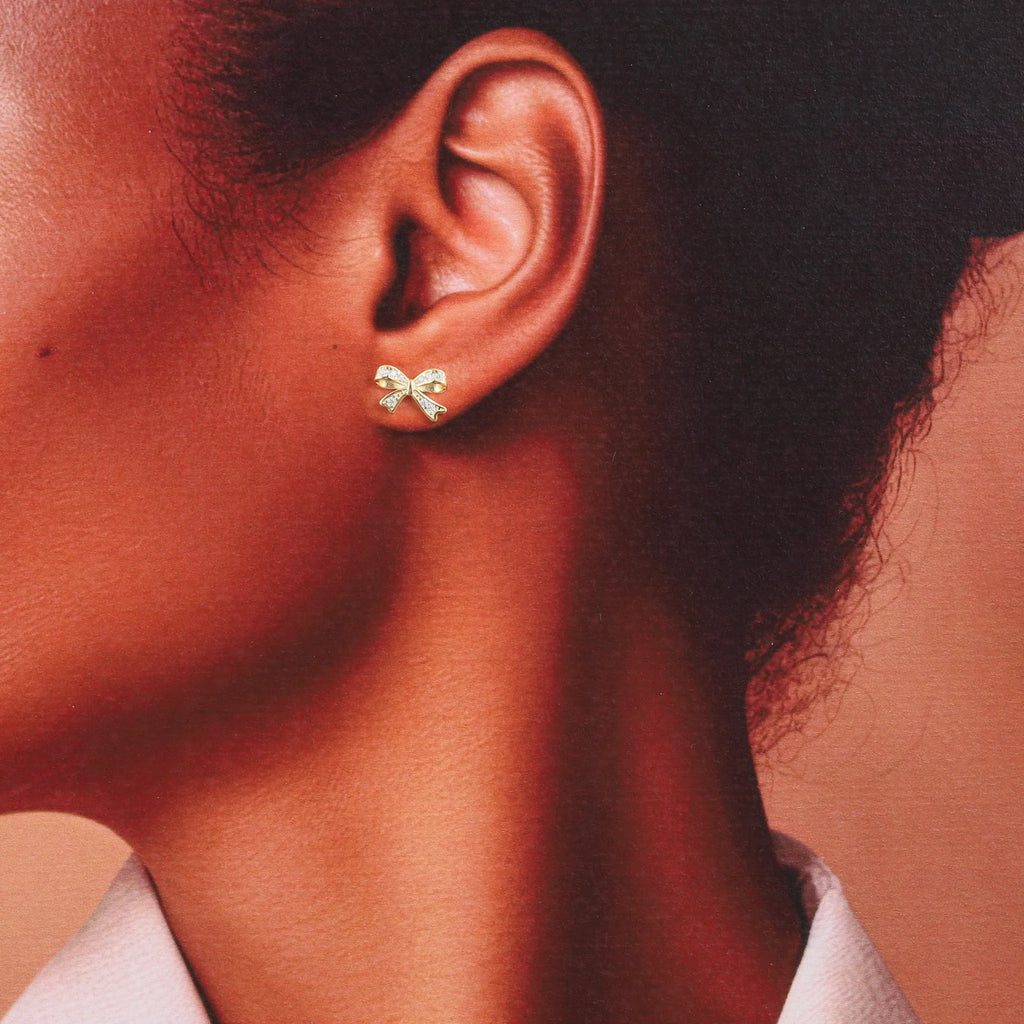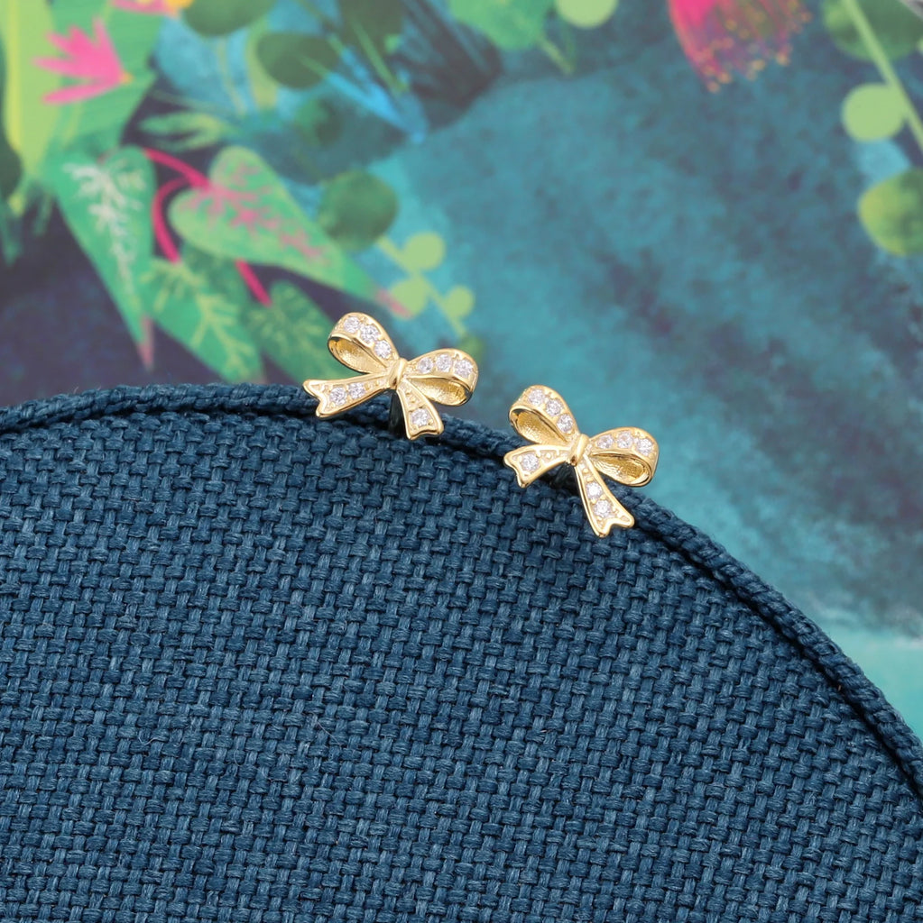 Sterling Silver Gold Plated Crystal Bow Earrings