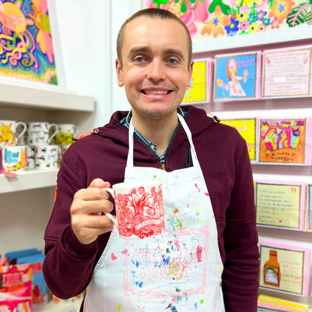 Decorated in the UK, the design wraps around the whole mug, with added artwork on the inside too.