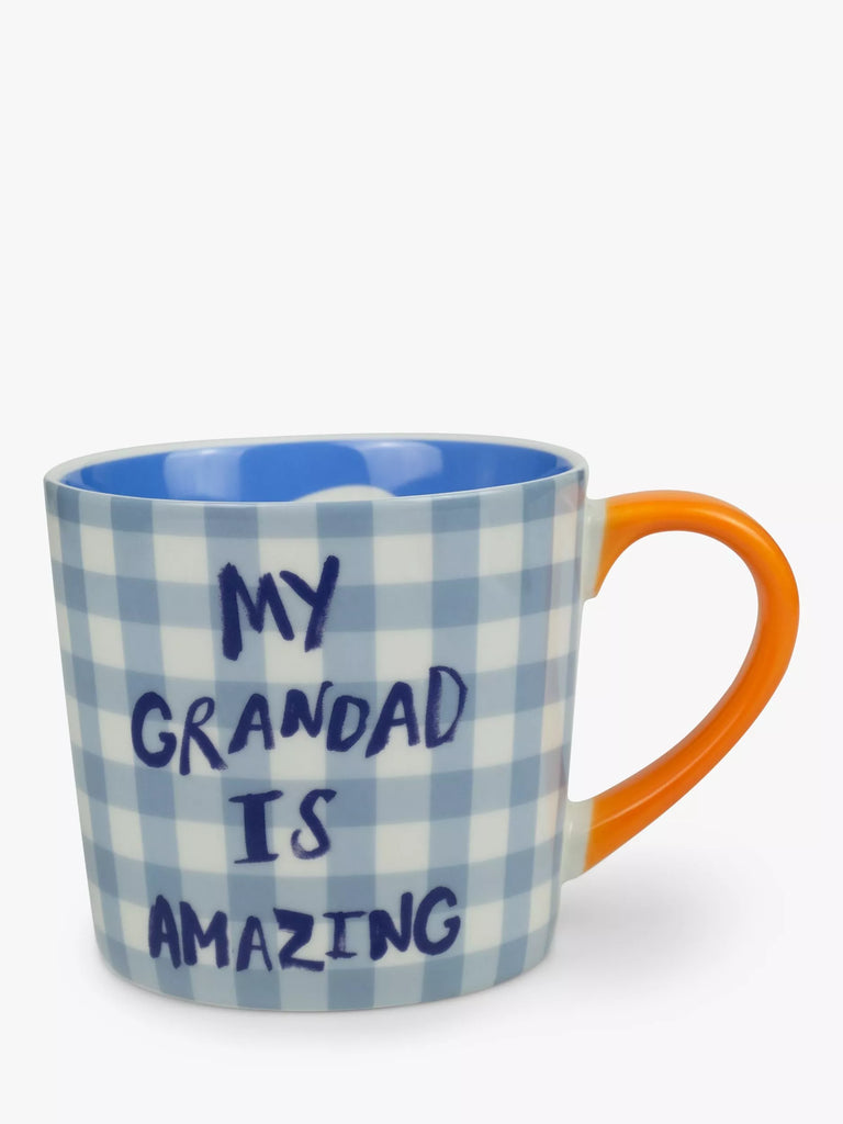 This blue gingham pattern mug with an orange handle is the perfect gift to show your grandad how much he means to you. With the heartfelt message "my grandad is amazing" printed on it, every sip will remind him of your love and appreciation. Make his day with this thoughtful present.