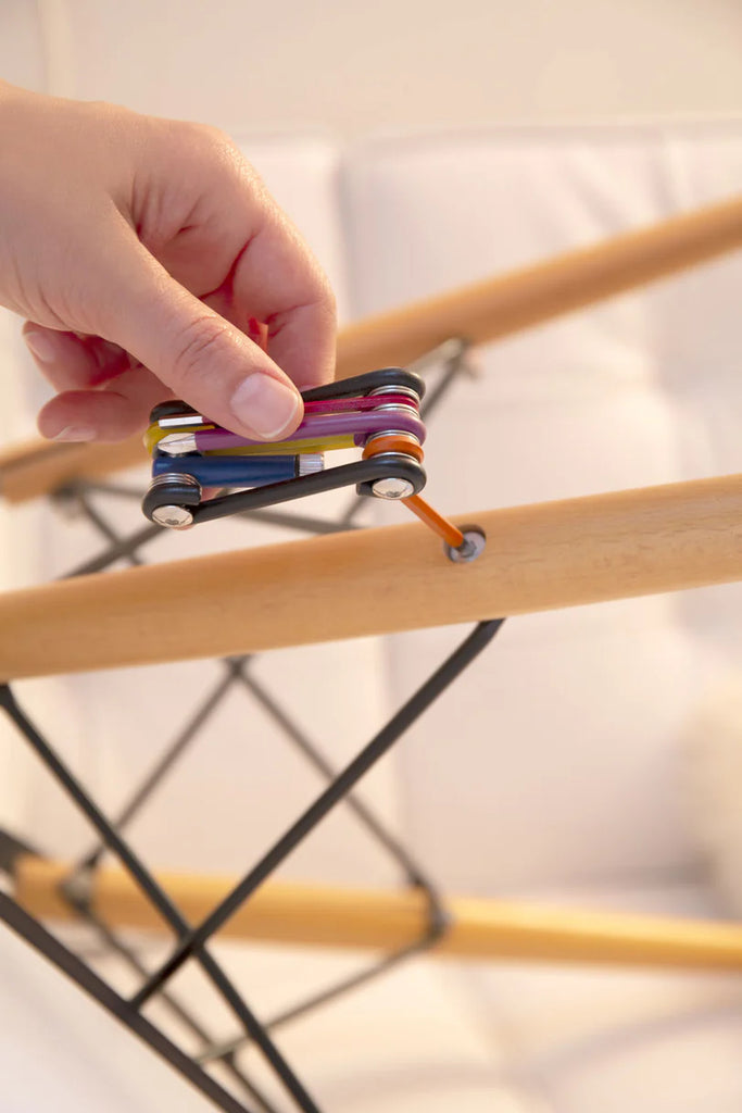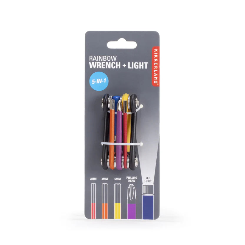 Includes LED light, 3 hex keys (3, 4 & 5mm) and a Phillips head screwdriver