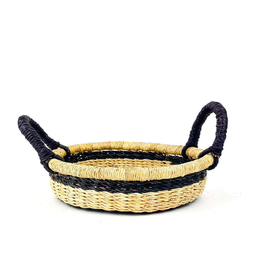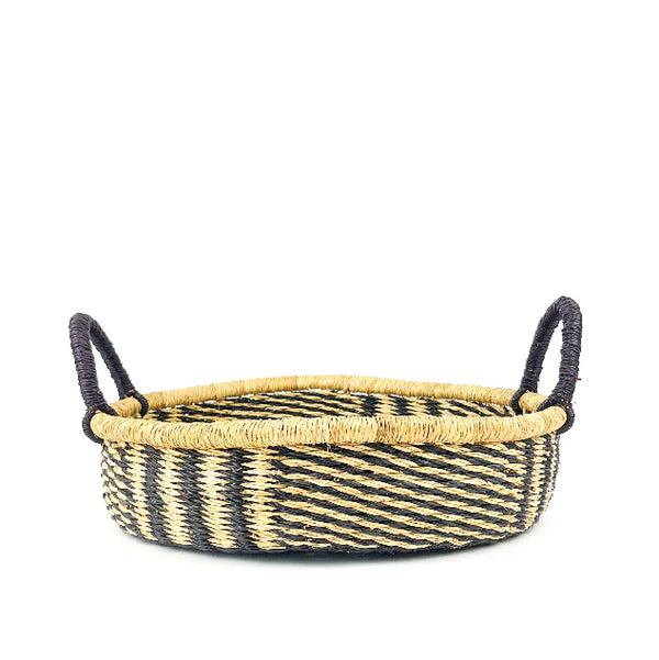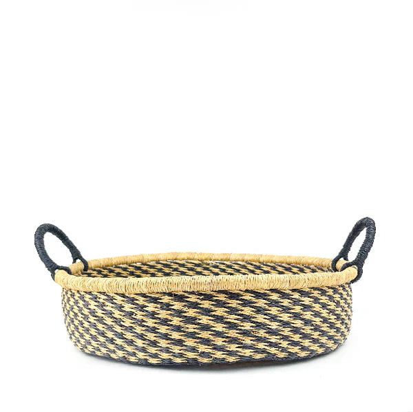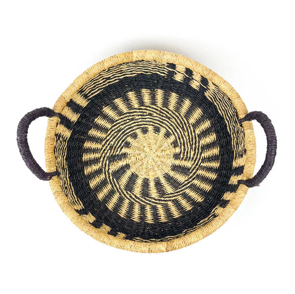 A handwoven round tray that brings both function and artistry to your home. Perfect for serving, styling, or simply standing out on a coffee table or console. Made by skilled artisans in Ghana, supporting sustainability and community empowerment.