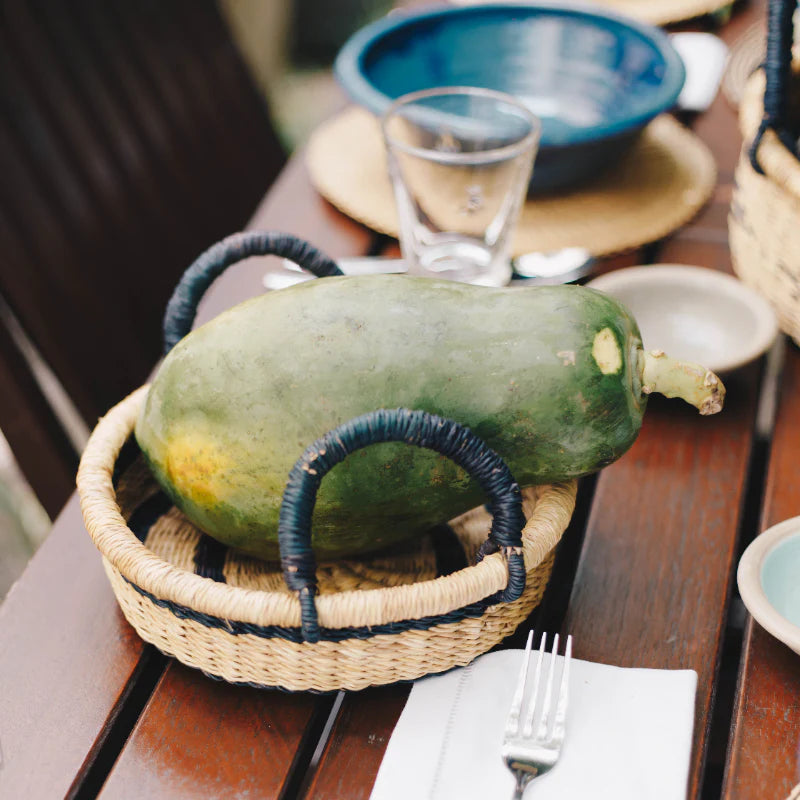 3. Allow the basket to completely dry on a flat surface before using it again. Because Frafra Baskets are made of Veta Vera grass, they enjoy getting damp occasionally. The moisture prevents them from becoming brittle in the long term. So caught in the rain? Absolutely fine—just make sure it dries!