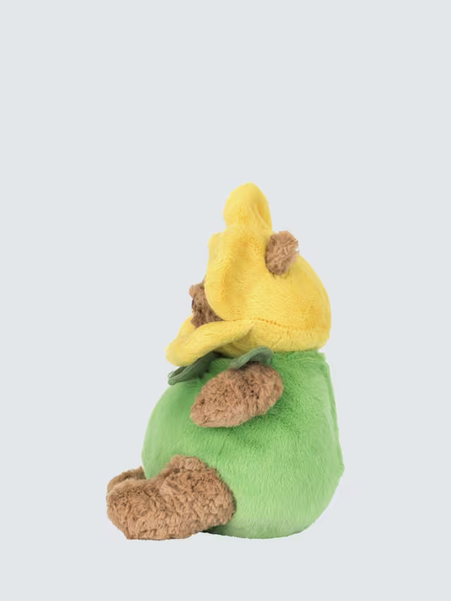 Our favourite textured toffee bear has a removable green costume with a bonnet of daffodil yellow petals – the perfect companion for spring adventures great or small.