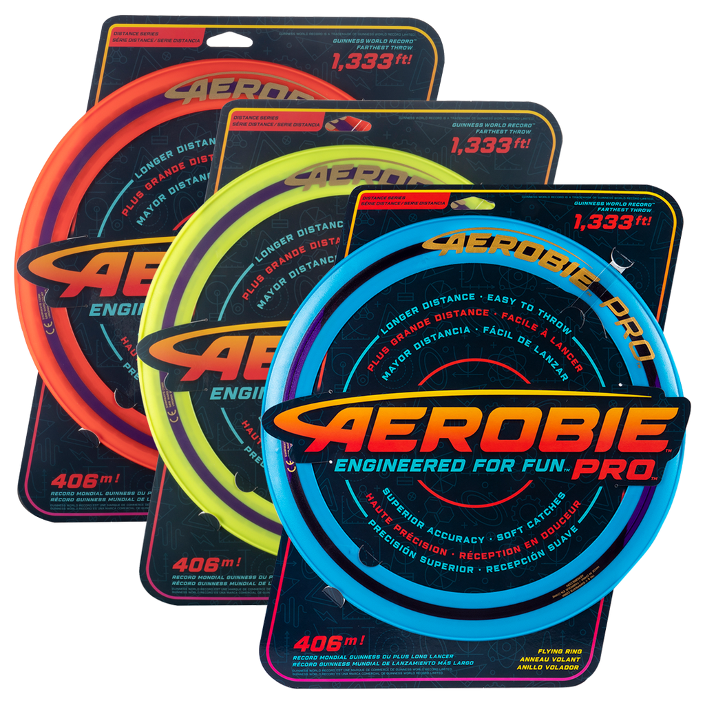 Can you throw 1,333 feet (406 meters)!?! Anything's possible with the Aerobie Pro Ring! This far-flying disc was used to set a world record for farthest throw! The thin design allows the disc to travel incredible distances and the soft edge makes for comfortable catches. And the open centre allows players to personalise their throwing and catching style - grab the edge with your hand or use the centre to catch with your arm or foot! Create your signature move with the world record-setting Aerobie Pro Ring!