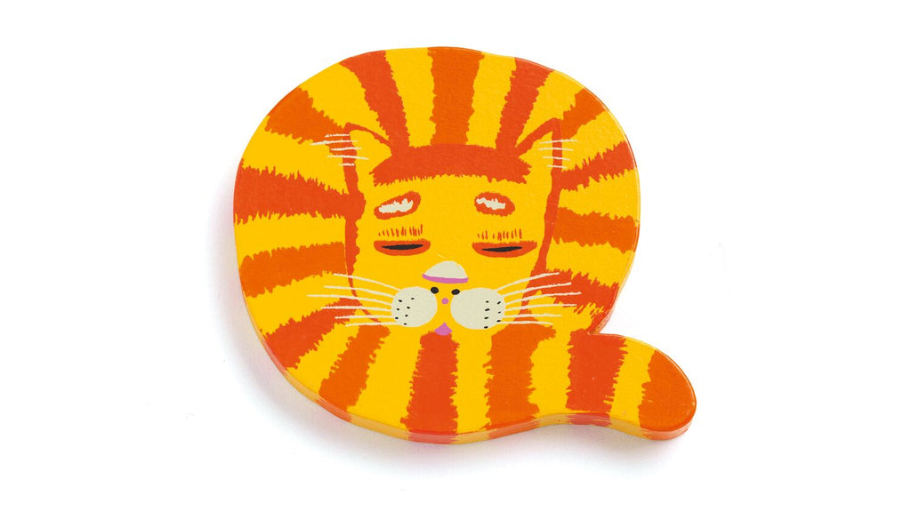 As this ginger tabby sleeps peacefully, it seems he inadvertently makes up the letter 'Q', as part of your child's name/nickname as a purrfect decoration for their bedroom door.