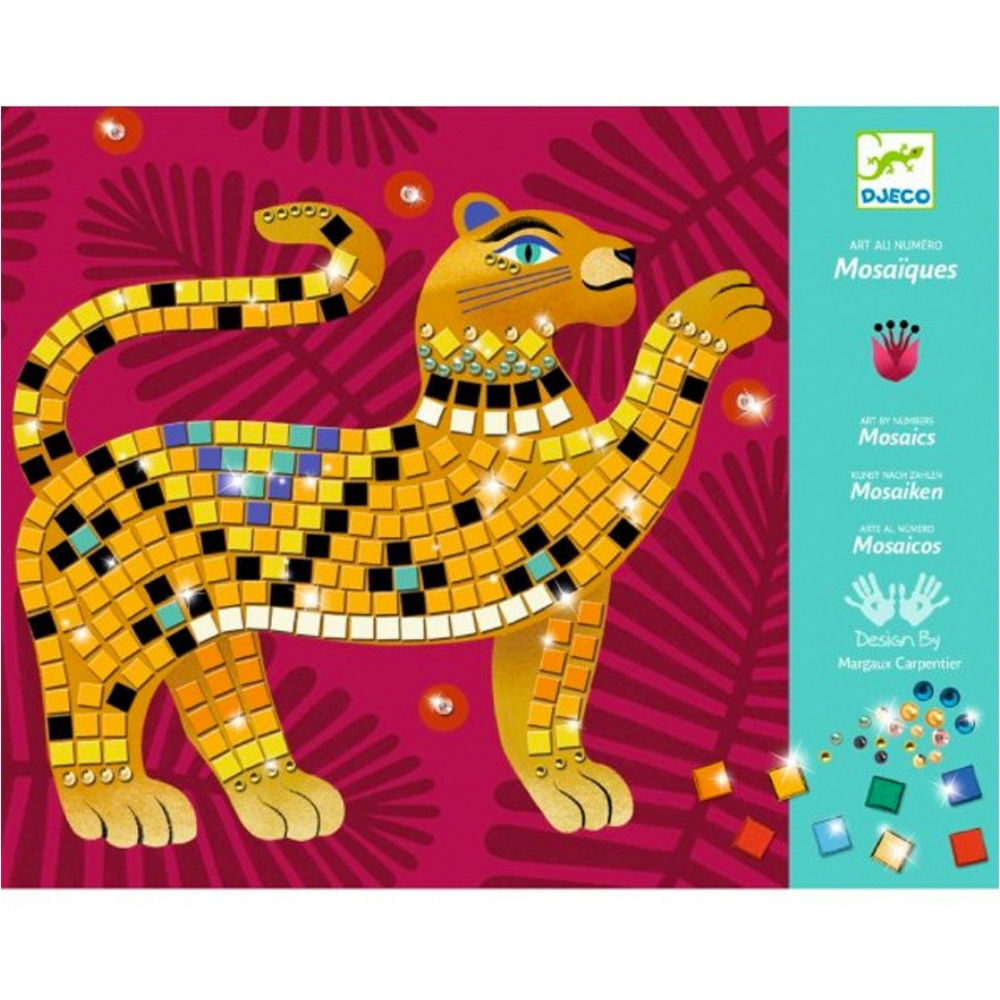 Children follow the colour-code indicated on the sheets and stick on the self adhesive rhinestones and squares of metallic foam: jungle animals dressed in shimmering stripes.
