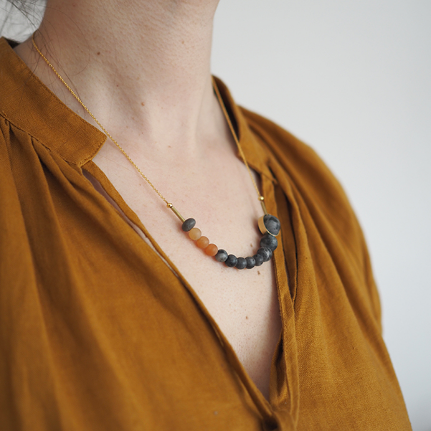 Lava Labradorite and Agate with Brass Component Necklace - Brass and Bold