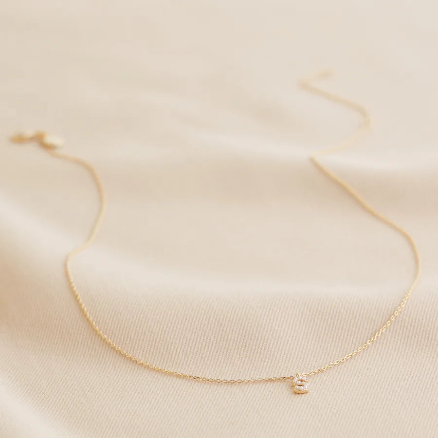 "S" Tiny Pearl Initial Charm Necklace in Gold By Lisa Angel