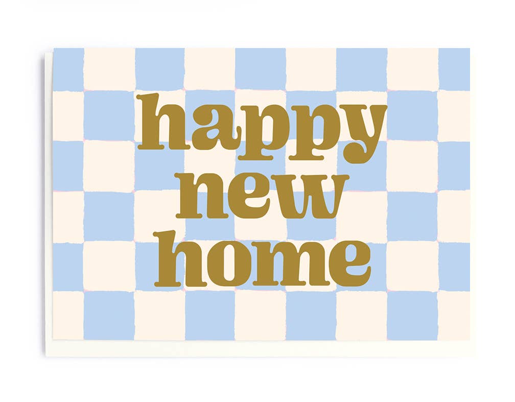 Blue and white check 'happy new home' gold foil message. Blank inside and supplied with an off-white envelope. Designed and printed in the UK