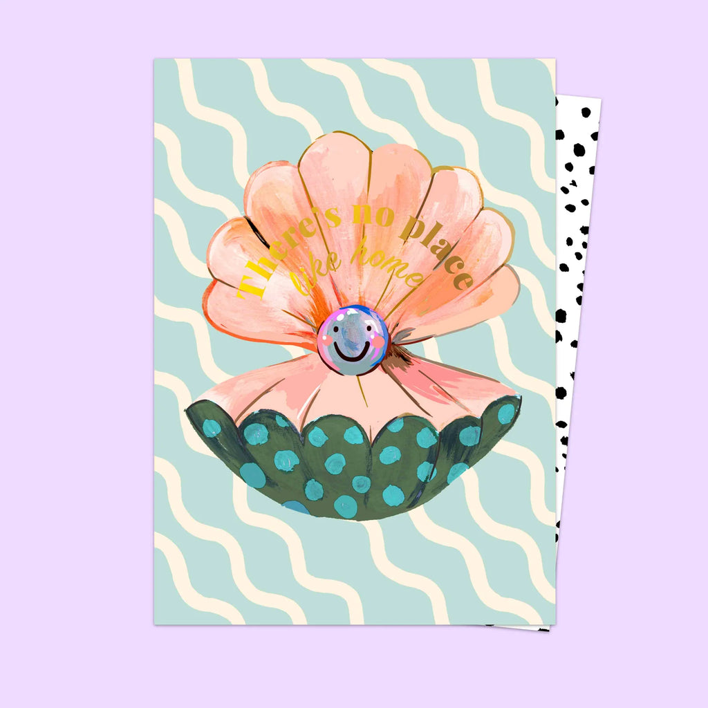 Celebrate the joy and charm of a new home with our No Place Like Home Oyster Shell Card. The pastel blue wavey background paired with gold foil detail adds a touch of elegance, while the cute pearl and scallop shell illustration has a warm and loving feel. Perfect for friends and family who have just moved house!