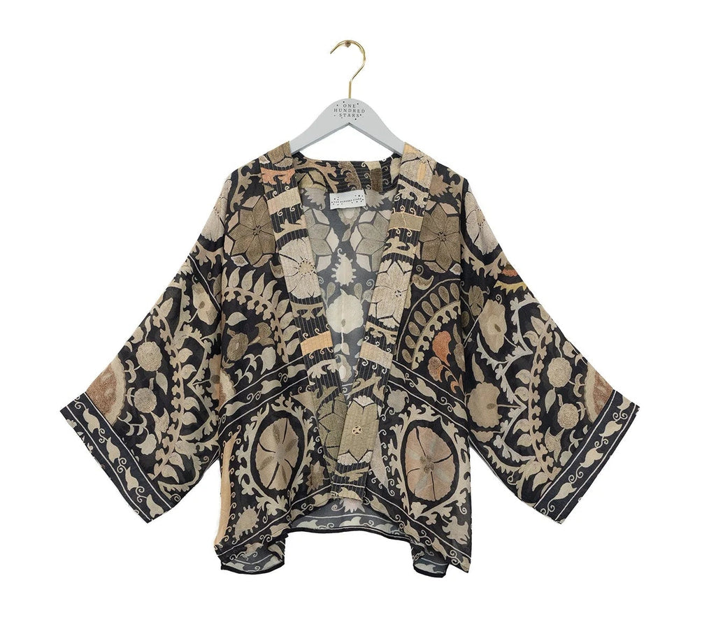 Our bestselling kimono jackets have loose ¾ length sleeves, an open front and a lightly embroidered lapel. Pair with a matching camisole and your favourite jeans in summer or layer over a polo neck during the cooler months.