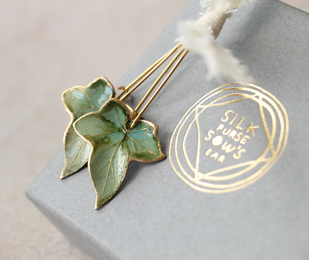 Olive Green Ivy Leaf Earrings By Silk Purse, Sow's Ear
