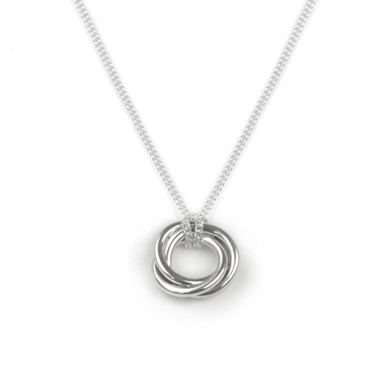 These two sterling silver rings, tightly entwined, represent our friendship. Wear this knot as a reminder that we will always be linked. That bond can never be broken.