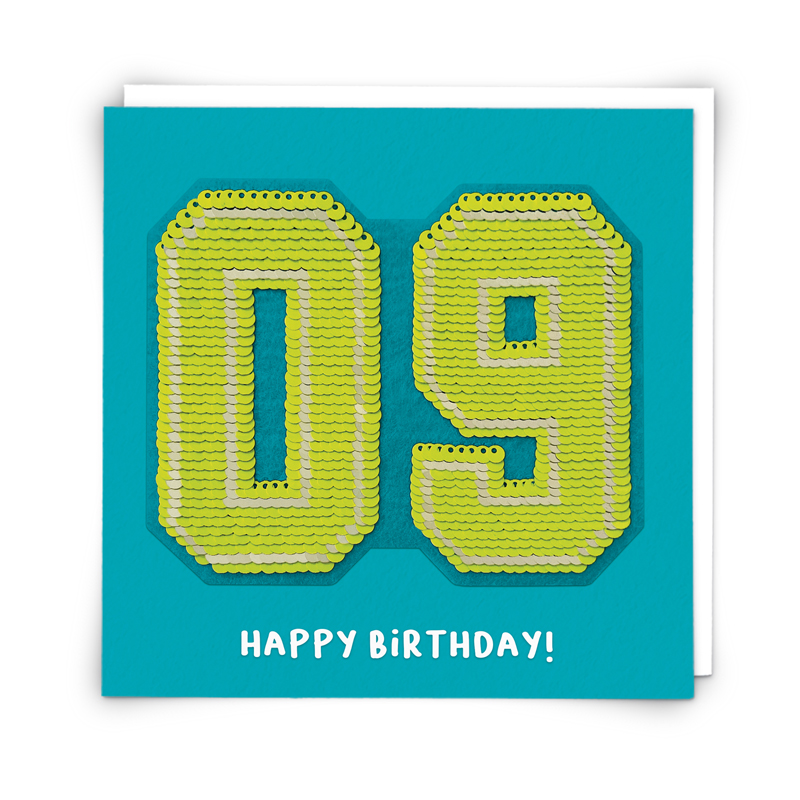 Age 9 Sequins Patch Greeting Card - Redback Cards